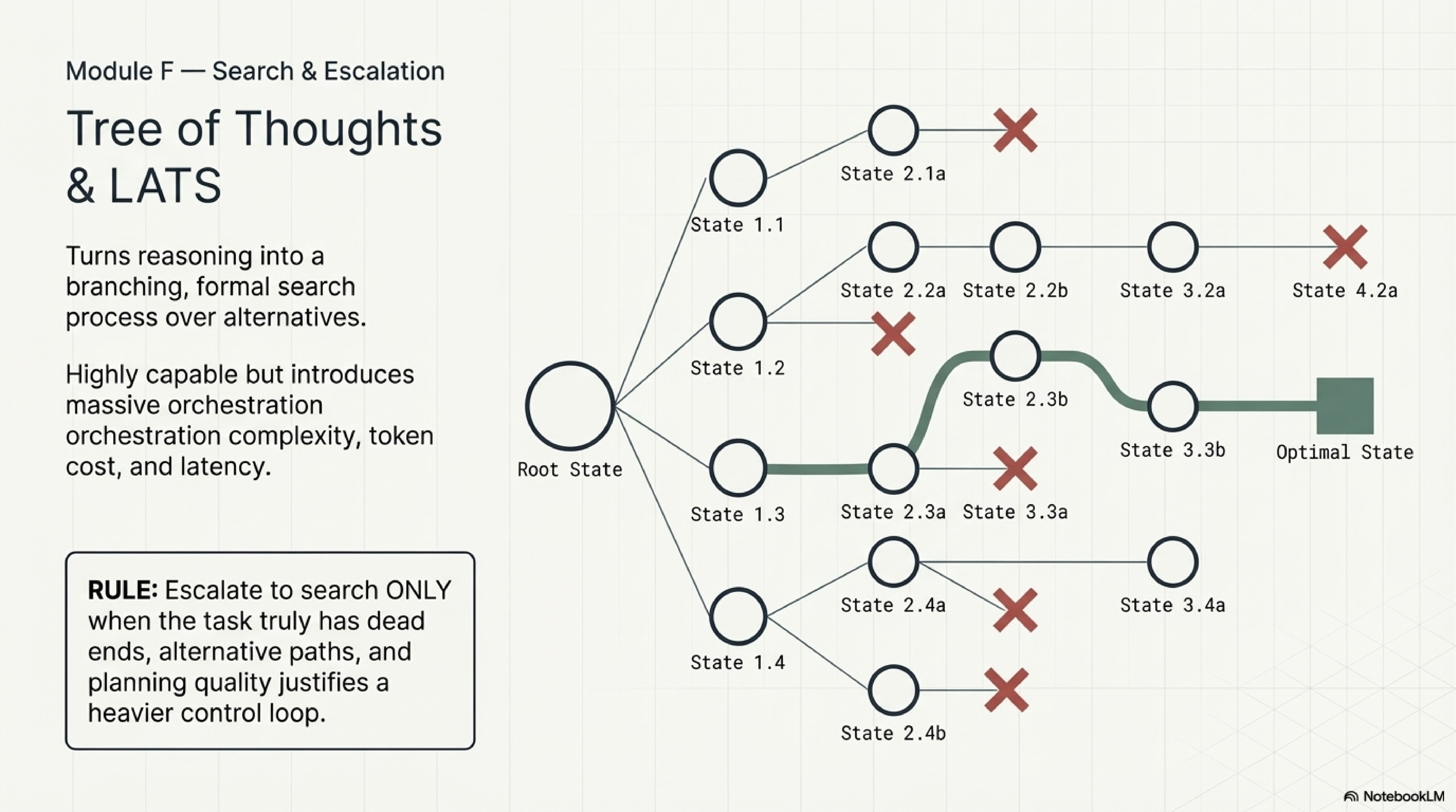 The search-heavy family goes farther. Tree of Thoughts, LATS, and LLM+P all explore the idea that some tasks contain genuine branching structure, dead ends, and planning states that linear prompting cannot handle well. Their value is real, but it is easy to misuse them. These papers should be read as escalation references for tasks where branching difficulty has already been demonstrated, not as prestige upgrades for ordinary workflows.