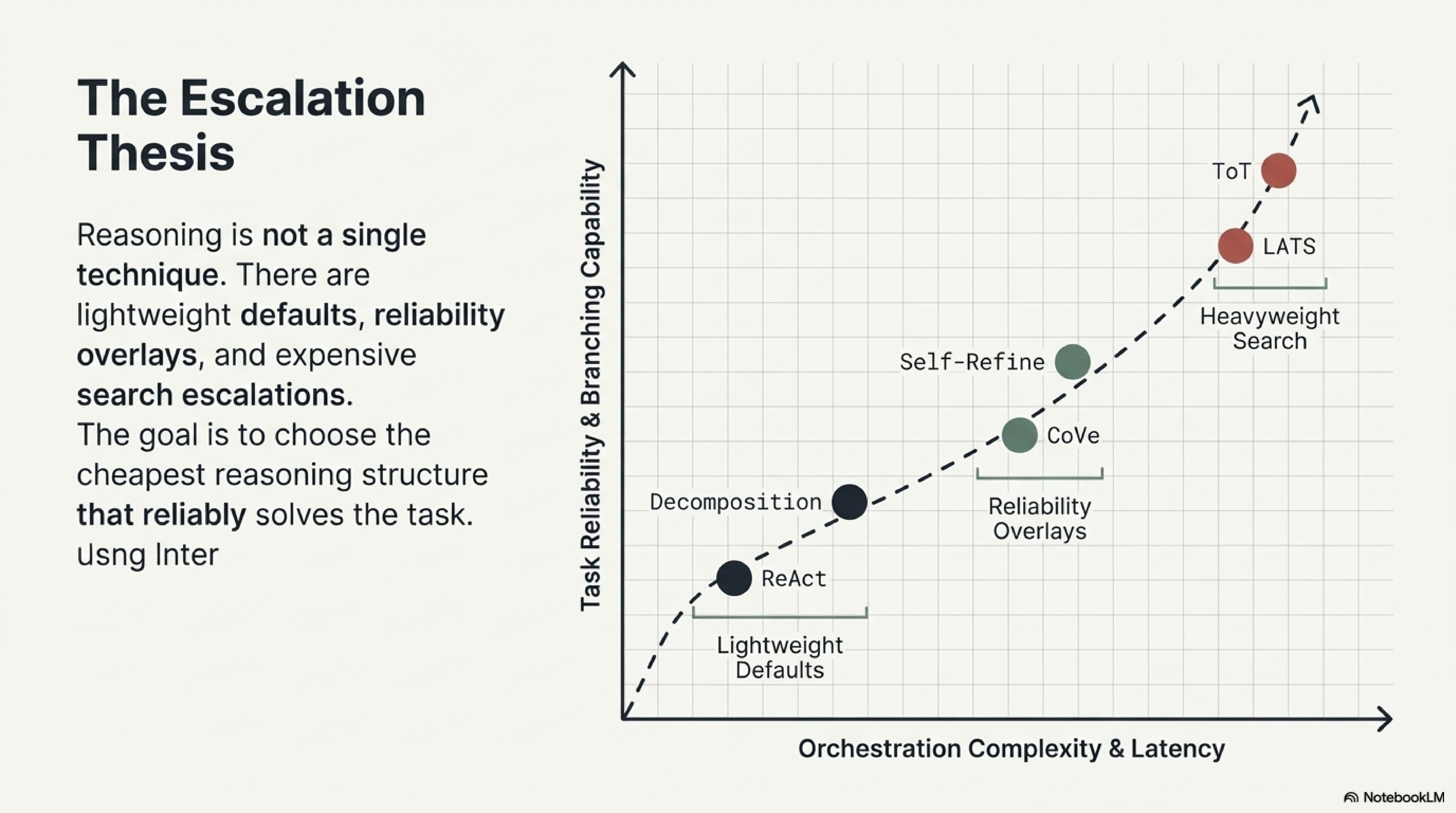 The design question, then, is not "which reasoning paper is best." It is "what is the lightest structure that makes this task reliable enough to operate." That question is deliberately conservative. Underbuild the scaffold and the model compresses too much work into one fluent guess. Overbuild it and the system pays unnecessary cost and latency for a task that simpler control would already solve. Mature reasoning design is therefore diagnostic. It starts by identifying the failure shape before selecting the method.